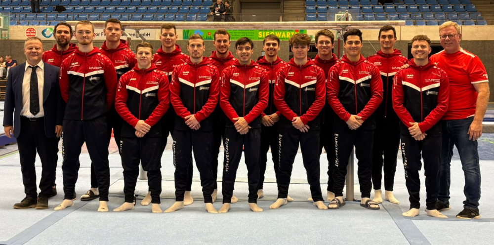 Mit Saisonbestleistung und 10:2 Gerätepunkten zieht die TG Nachwuchsmannschaft ins Ligafinale nach Kirchheim bei Heidelberg ein. Obwohl Trainer Heiko Erb nicht auf seinen kompletten Kader zurückgreifen konnte, war wider Erwarten kaum die Spur einer Schwäche der TG-Riege erkennbar. Nur am Barren musste man Federn lassen, was aber dem positiven Verlauf keinen Abbruch tat. Das Comeback von Paul Sester nach seinem schweren Trainingsunfall vor anderthalb Jahren war schon ein sehr emotionaler Moment. Mit erfolgreichen Auftritten am Seitpferd mit 10,45 Punkten und am Barren mit 10,35 Punkten präsentierte sich Paul Sester als sicherer Punktelieferant und großer Rückhalt für das gesamte Team. Die Einzelwertung gewann Gastturner Artyom Oganian. Er erturnte sich 10,15 Punkte am Reck, 10,35 Punkte am Sprung, 11,05 Punkte am Seitpferd und 12,70 Punkte am Boden. Zu erwähnen sind die Leistungen am Boden von Paul Maelger mit 11,00 Punkten, von Levi Klumpp mit 11,30 Punkten, von Mats Stahl mit 12,10 Punkten und von Jonas Erb mit 12,40 Punkten. An den Ringen erzielte Jonas Erb 10,15 Punkte. Am Sprungtisch gab es 10,45 Punkte für Levi Klumpp und Paul Maelger, 10,75 Punkte für Jonas Erb und 10,80 Punkte für Mats Stahl. Ob man der Favoritenrolle in der Südstaffel gerecht wird, werden wir am kommenden Wochenende erfahren.