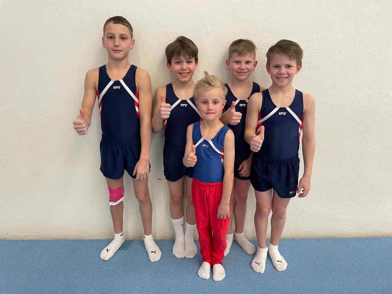 In der AK7, Jahrgang 2018, belegte Neueinsteiger Mika Kühne einen sehr beachtlichen 11. Platz unter 37 Teilnehmern. Er zeigte mit 9,15 Punkten an den Ringen und mit 9,20 Punkten am Sprung sein Potenzial. In der AK9, Jahrgang 2016, gewann Oskar Weber die Silbermedaille. Mit dieser starken Leistung setzt er seine positive Entwicklung fort und lässt 19 weitere Athleten hinter sich. Am Seitpferd erreichte er 9,30 Punkte und am Sprung waren es 9,05 Punkte. Mit seiner Reckübung erzielte er die Tagesbestleistung seiner Alterklasse mit 9,80 Punkten. In der AK10, Jahrgang 2015, belegte Tim Feger in diesem erlesenen Teilnehmerfeld von 21 Nachwuchsturnern einen guten 10. Rang. Damit setzt auch er seine positive Entwicklung fort. Seine Bestleistung erzielte er am Sprung mit 9,60 Punkten. In der AK11, Jahrgang 2014, gewann Philip Wolf die Bronzemedaille, obwohl er einen rabenschwarzen Tag erwischte, denn seine Wertungen spiegeln nicht sein wahres Leistungsvermögen wider. Aber sein riesengroßes Potenzial bescherte ihm trotzdem ein Treppchenplatz unter 13 Mitstreitern. Die Jungs wurden von Manuel Rothmann und Marcel Wickert (DTB-Turnzentrum Herbolzheim) betreut.