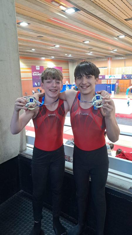 Das Nachwuchsteam aus Gambsheim der 10-15 Jährigen mit den TG-Talenten Jonas Erb (TV Kork) und Mats Stahl (TV Auenheim) in der Klasse Federale A3 lieferte eine grandiose Leistung im elsässischen Mulhouse mit dem 3. Platz ab. Mit nur einem Zehntel Rückstand auf den Zweitplatzierten im Teilnehmerfeld von 18 Mannschaften, durfte sich Trainer Geoffrey Reinhardt mit seinem Team sehr über dieses Ergebnis freuen. Jonas Erb zeigte am Pferdsprung 10,80 Punkte und Mats Stahl am Boden 10,05 Punkte. Damit hatten sie im Gambsheimer Turndress maßgelblich Anteil daran, den Treppchenplatz im Mannschaftsfinale zu gewinnen.