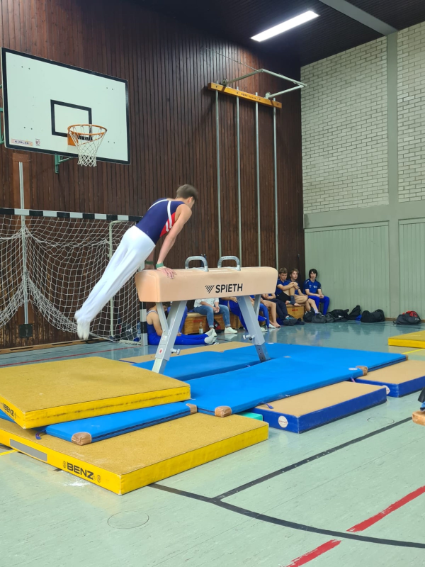 Überraschend fit präsentierten sich die Jungs um Trainer Heiko Erb zu Beginn der Saison und verbuchten 10:2 Gerätepunkte auf der Habenseite. Obwohl man nicht in Bestbesetzung antreten konnte, hatte der Jugendtrainer ein glückliches Händchen im Personaleinsatz an den sechs Geräten, denn gleich 4 der gemeldeten TG-Turner hatten schon einige Einsätze in der vergangenen Verbandsligarunde der 2. Mannschaft und waren im Geräteeinsatz in der Bezirksklasse nur begrenzt einsetzbar. Zu erwähnen sind die Bestleistungen am Boden von Paul Maelger und Edgar Neb mit je 11,80 Punkten und von Jonas Erb und Mats Stahl mit je 12,20 Punkten. Georg Neb zeigte am Sprungtisch einen Tshukahara gehockt und erreichte mit 11,10 Punkten die Tageshöchstnote an diesem Gerät. Edgar Neb zeigte einen erfolgreichen Sechskampf und belegte den 2. Platz in der Einzelwertung.