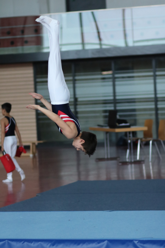 Mats Stahl beim Strecksalto rückwärts am Boden