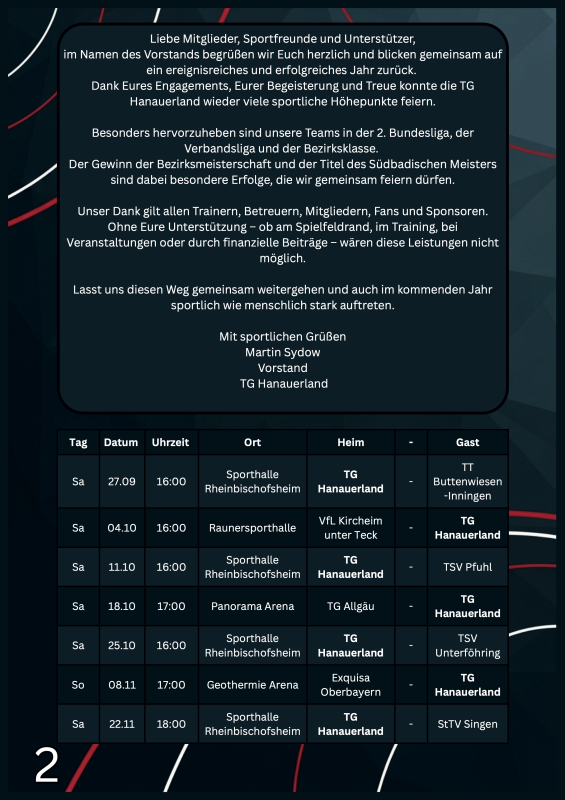 1. Die TG Hanauerland e.V. bemüht sich um die Richtigkeit und Aktualität der Informationen, die auf dieser Internetseite zur Verfügung gestellt werden. Eventuelle Unklarheiten oder gar Fehler können trotzdem nicht gänzlich ausgeschlossen werden. Eine Gewähr übernimmt die TG Hanauerland e.V. daher nicht für die Korrektheit, Aktualität, Qualität und Vollständigkeit der bereitgestellten Informationen. Für Schäden materieller und immaterieller Art, die durch die Nutzung oder Nichtnutzung der dargebotenen Informationen bzw. durch die Nutzung fehlerhafter und unvollständiger Informationen unmittelbar oder mittelbar verursacht werden, haftet die TG Hanauerland e.V. nicht. Alle Angebote sind freibleibend und unverbindlich. Der Autor behält es sich ausdrücklich vor, Teile der Seiten oder das gesamte Angebot ohne gesonderte Ankündigung zu verändern, zu ergänzen, zu löschen oder die Veröffentlichung zeitweise oder endgültig einzustellen.